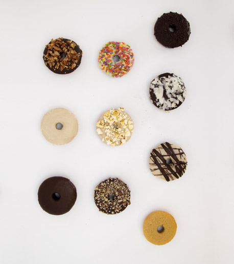 MAY CONTAIN ORGANIC VIRGIN COCONUT OIL, SEMI-SWEET CHOCOLATE, CHOCOLATE VEGAN SPRINKLES, PECANS, COCONUT FLAKES, KETTLE CORN, RAINBOW VEGAN SPRINKLES.